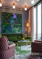 Occupying the ninth floor at The William Vale, The Malin Williamsburg workspace features mixed seating, dedicated desks, private offices, meeting rooms, phone booths, a library, kitchen, and expansive, floor-to-ceiling views of Manhattan and Brooklyn.