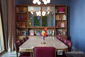 Month-to-month membership with access to communal seating, bookable spaces, private phone booths, library, and